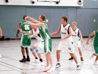 Mit 96 : 63 gewann die Mannschaft der SG gegen die junge U-16 Bundesligamannschaft. Trainer Ballhausen fielen für das spiel alle 3 Center aus. Nobert Niedzwieki ist noch verletzt und Mario Mentzel und Markus Linke waren privat verhindert. Es standen aber trotzdem genügend Spieler zur Verfügung da man mit der 2. Mannschaft mischte. Die ersten Minuten waren noch ausgeglichen, doch dann setzten sich die Gastgeber immer mehr ab. Die körperliche Überlegenheit wurde ausgenutzt und so führte man zur Halbzeit mit 47 : 32. Die Mannverteigung funftionierte bei der SG schon ganz gut und so wurden viele Ballverluste bei den jungen ASc ern erzwungen, die dann mit Fastbreak abgeschlossen wurden. Es wurde gut durchgewechselt, sodaß auch die 2. Mannschaft genügend Spielzeiten bekam. Spielertrainer Henning Aschoff spielte das 3. Viertel komplett mit seiner Mannschft, um so für das am kommende Wochende beginnende Punktspiel zu testen. Hier spielte die Mannschaft von Sebastian Förster sehr gut mit und machten ihre Punkte durch gutes Paßspiel und auch 3 Punktewürfe. Das Letzte Viertel ging aber wieder deutlich mit 28 : 15 an die Gastgeber für die es insgesamt ein gutes Trainingsspiel war. Beide Trainer der SG, Johannes Ballhausen und Henning Aschoff, waren zufrieden, da die ASC er ein sehr guter Trainingspartner war. Auch der ASC Trainer Sebastian Förster war sehr zufrieden, da er viel gesehen hat, was er noch bei seinen jungen Spielern verbessern muß. Es war auch das 1. mal, das sie gegen eine Herrenmannschaft gespielt haben.
