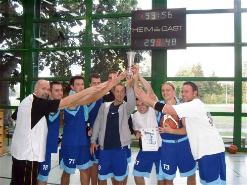 Zum ersten Mal in der Herrenkategorie ging das erfolgreiche Team der „Original Court Steppers“ in der Besetzung Sebastian Born (BG 74 Göttingen), Josef Hunold, Markus Orlob und Rupert Fabig (alle SG Hilkerode/Birkungen) an den Start. In der Vorrundengruppe zeigten sich die OCS souverän und sicherten sich den ersten Platz. Das erste Spiel wurde zwar erst mit der Schlusssirene (14:13) siegreich abgeschlossen, doch in den beiden weiteren Partien hatten die Eichsfelder keinerlei Probleme. Im Viertelfinale wartete ein spielstärkerer Gegner aus Sömmerda auf, aber das eingespielte Trio behielt mit 14:9 die Oberhand. Erst im Halbfinale hieß es Endstation. In einem hart geführten Spiel unterlagen die OCS einer körperlich überlegenen Crew recht deutlich. Aufgrund schwacher Motivation unterlag man auch im Spiel um den dritten Platz gegen ein Nordhäuser Team mit 10:12. Dennoch trat das Team die Heimreise nicht ohne Pokal an. Im „Time-Shooter“-Wettbewerb siegten Josef Hunold und Rupert Fabig souverän mit der Tagesbestleistung von 51 Punkten.