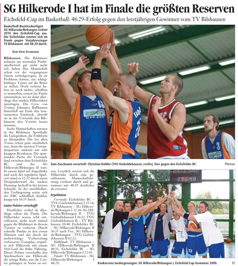 Am Samstag, den 09.05.2009 fand in Leinefelde-Worbis das Achtelfinale im Basketball-Bezirkspokal zwischen der SG Hilkerode/Birkungen und dem VfL Wolfsburg statt.