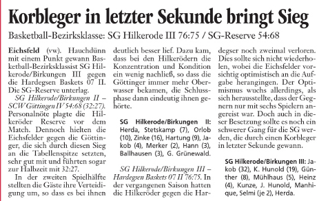 SG Hilkerode / Birkungen II - Hardegser Baskets 07 II (88:72) 75:62